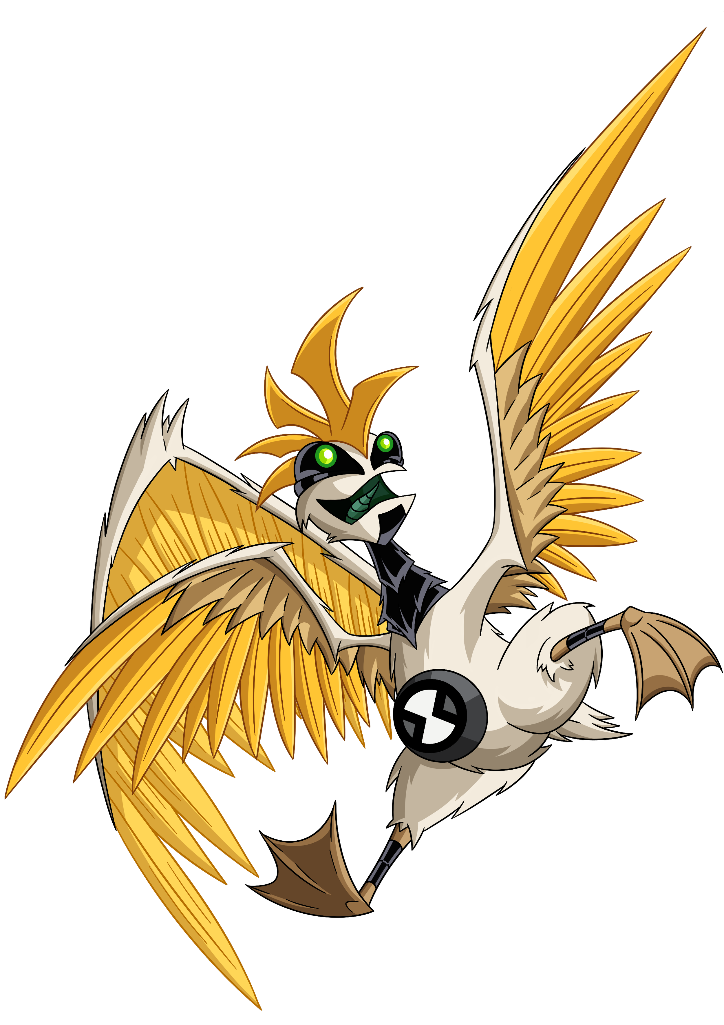 Featherbuster is the Omnitrix’s DNA sample of a Gallus Gallus from the planet Tyranodor.