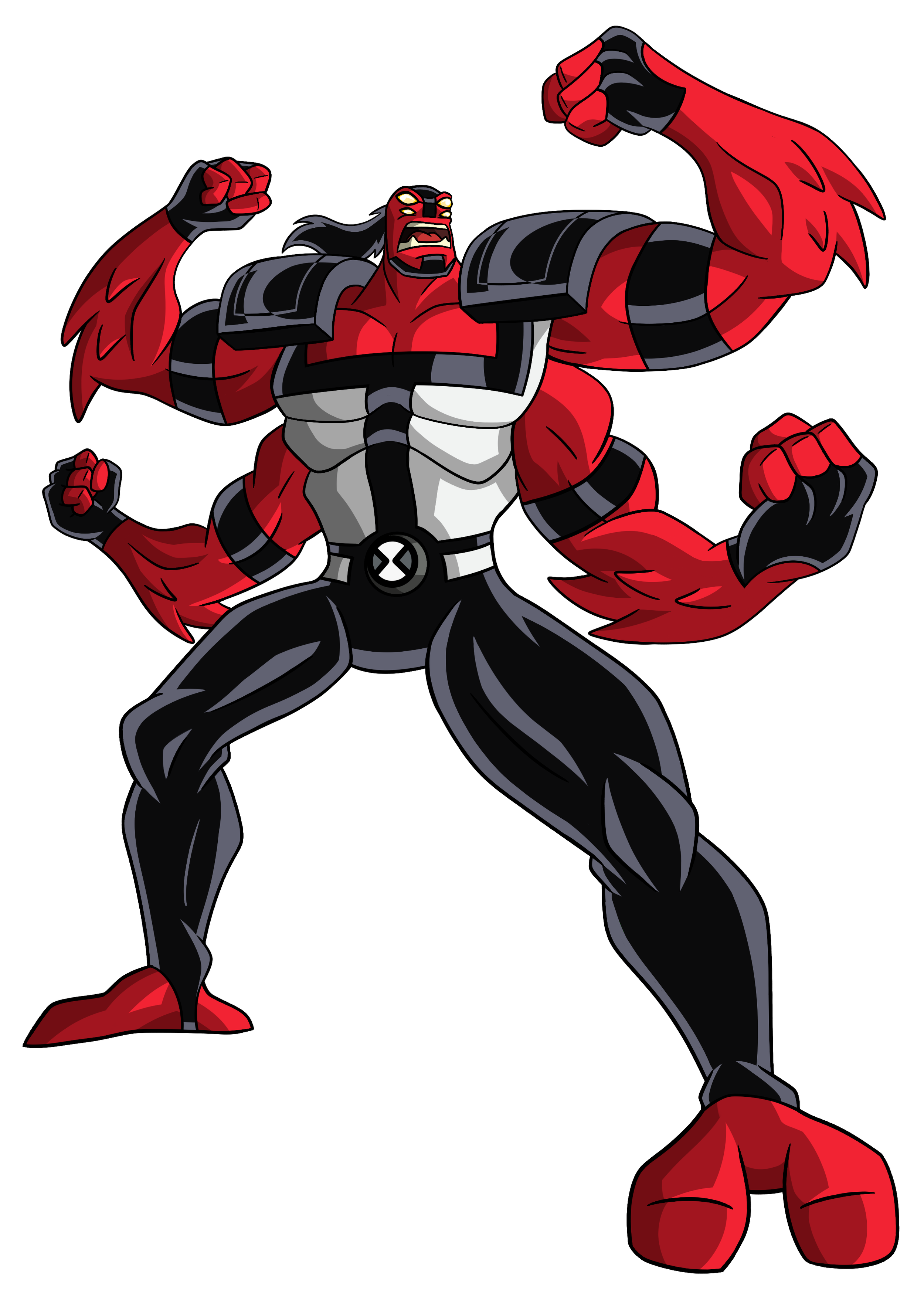 Enhanced Strength - Four Arms is incredibly strong, utilising his four muscular arms to lift several times his own weight and punch through various resilient materials with ease. His strength allows him to use anything heavy as a weapon, from big rocks he can throw several feet away, to beams and pillars that can be used as clubs.