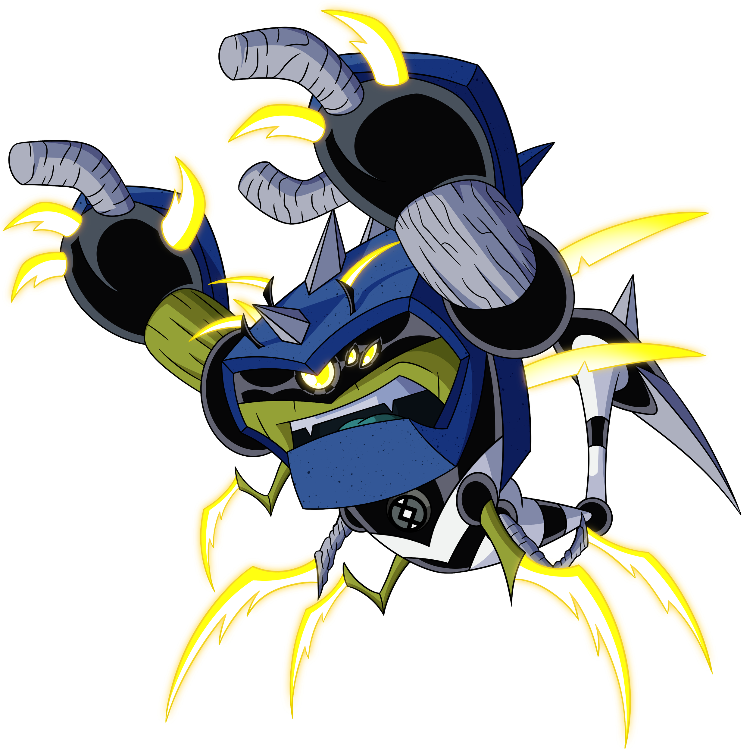 But he can still use his sharp claws and talons for piercing. His pincers can also be used to crawl on walls.