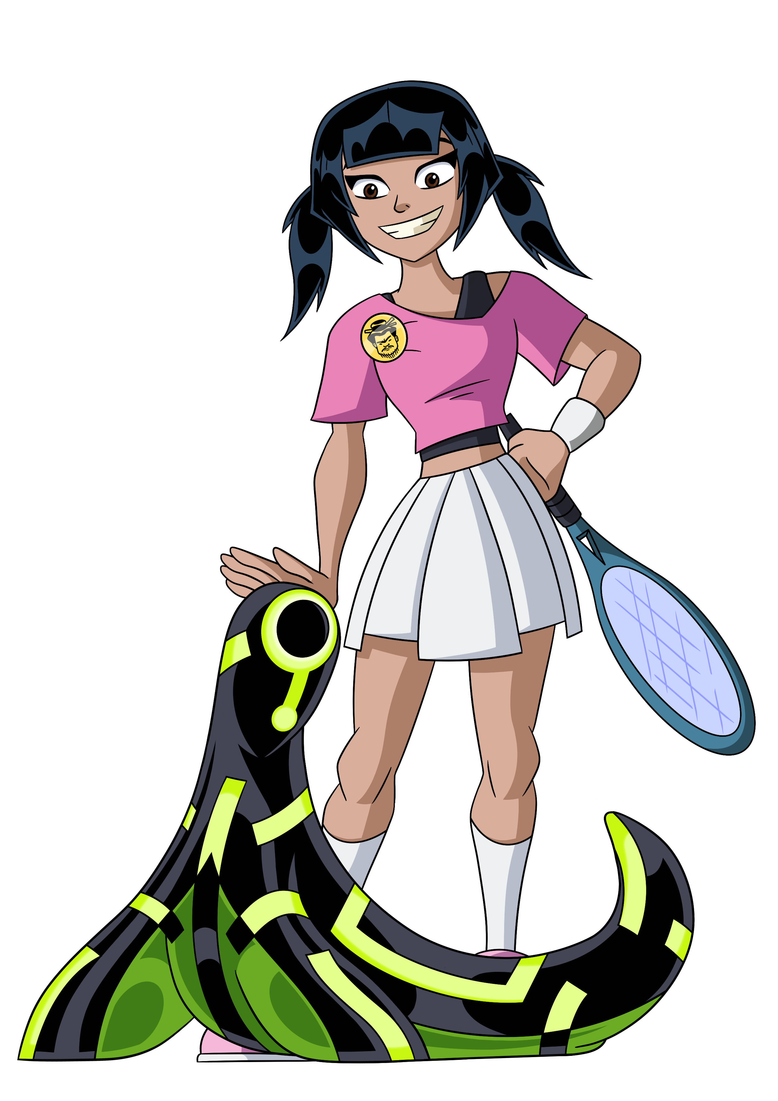Julie Yamamoto is a pro-tennis player who is one of the best friends of Ben Tennyson. The two dated throughout High School and consequently joined him on many of his heroic adventures. On one of these missions, she meets and befriends a Galvanic Mechamorph Animal named “Ship”, taking him in as her pet and battle cruiser whenever the team needs it.