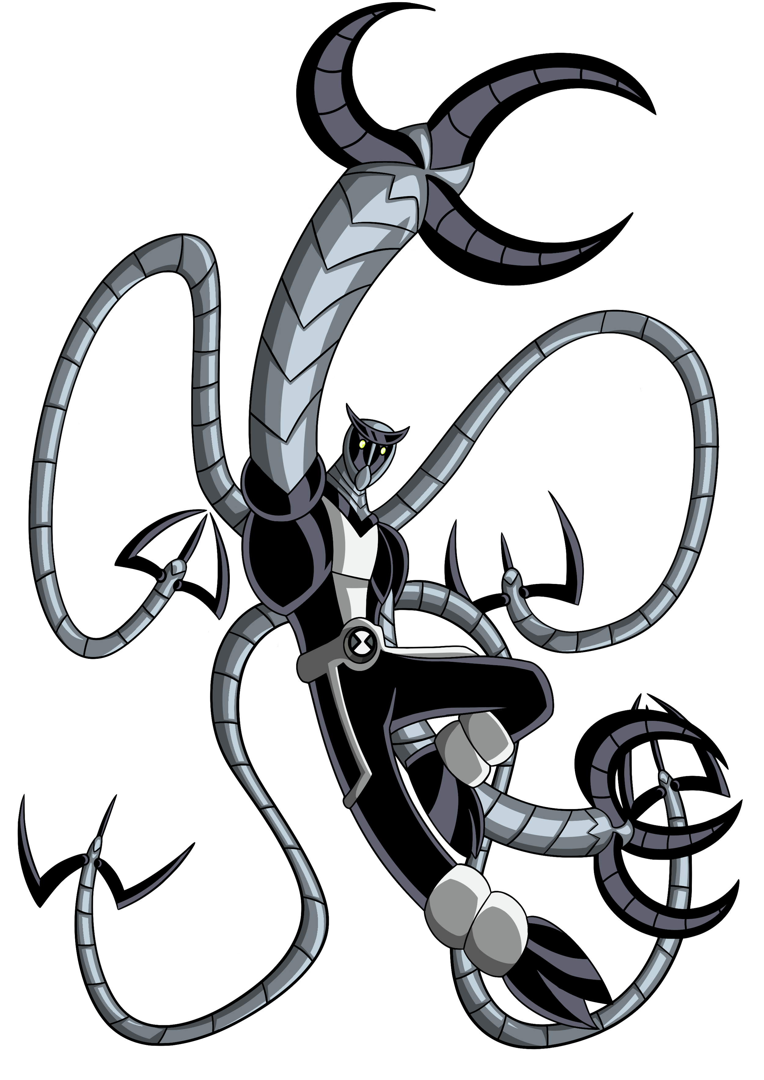 Elasticity - Metalium possesses a metallic body that is surprisingly malleable. His arms, fingers and tentacles can stretch with virtually no limit, growing and compacting however he wishes. His neck and legs are stretchable as well.